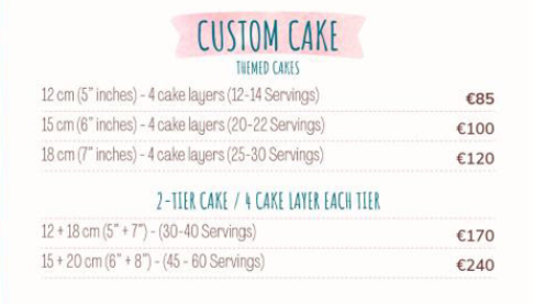 En esta sección, encontrarás una lista de precios orientativos para estilos de tartas únicos que no están disponibles en las demás categorías de nuestra tienda.